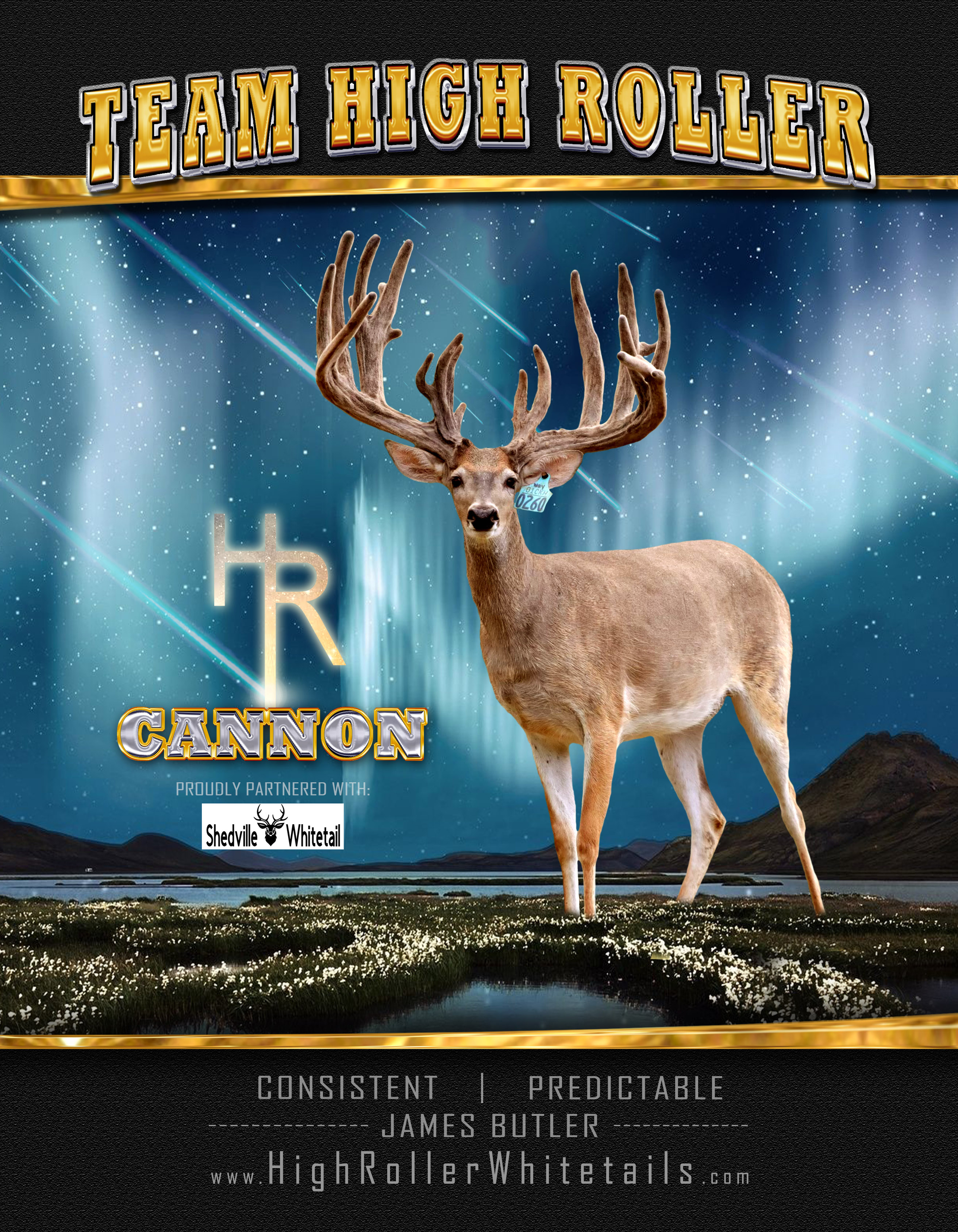 By investing in the best genetics available in the Whitetail Deer industry nationwide, High Roller Whitetails has developed a herd that feature some of the best Whitetails on the planet. James Butler, who manages the breeding program, hand selects these crosses to produce outstanding deer with a variety of traits such as tine length, inside spread, droptines and rack symmetry.